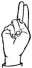 На ћирилици написано МИЛА ГРУБНИЋ састоји се из 11 слова [?]. Исписано ћириличном једноручном азбуком за глувонеме: